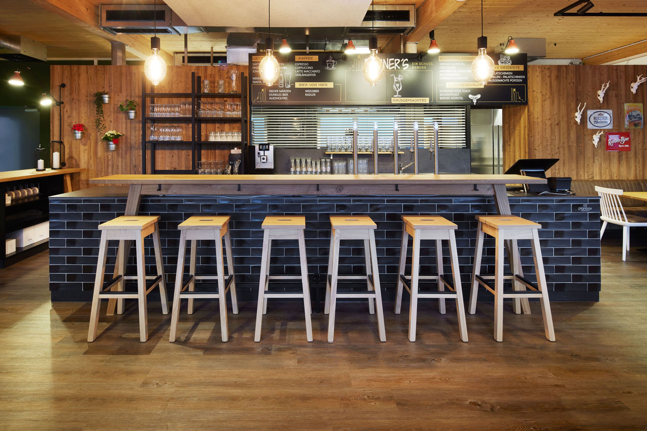 Unter dem Motto ein Schuss Genuss lädt das modern interpretierte Wirtshaus „Plainers“ im Schießzentrum Innviertel in Hohenzell zum Genießen ein. Echte, hochwertige Materialen wie die sägerauhe Lärche verleihen dem Lokal mit 65 Sitzplätzen eine angenehm gemütliche Atmosphäre. Einen Blick auf die Zubereitung der traditionellen Schmankerl gewährt die offene Sichtküche die hinter dem Barbereich integriert ist.